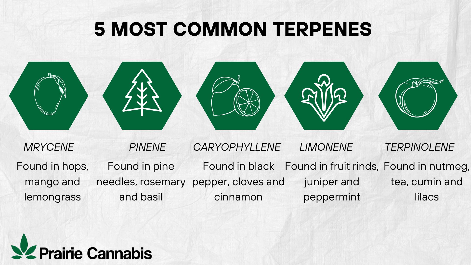 Every strain has its terpene profile, giving rise to diverse aromas and experiences. They determine whether a strain is acidic or sweet and whether it has a more cerebral or physical effect. The following figure explains the impact of different types of terpenes: